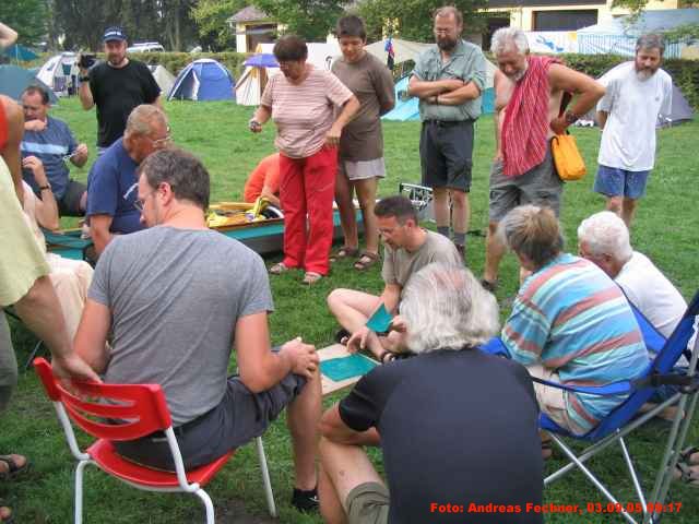 Lars mit Aufbauschwierigkeiten: In der glühenden Sonne klebte die Haut...