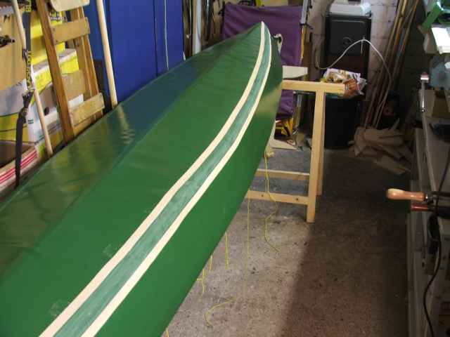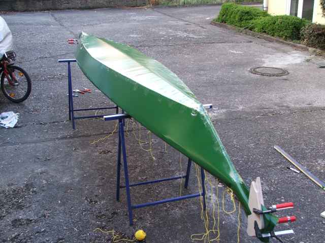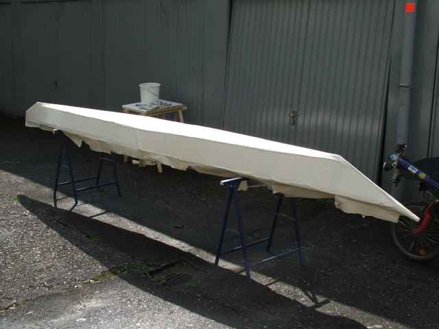 Nach ungefähr 30 Stunden Arbeit an drei Tagen bringt die Haut jetzt 3kg auf die Waage, was das Bootsgewicht auf 14kg erhöht.