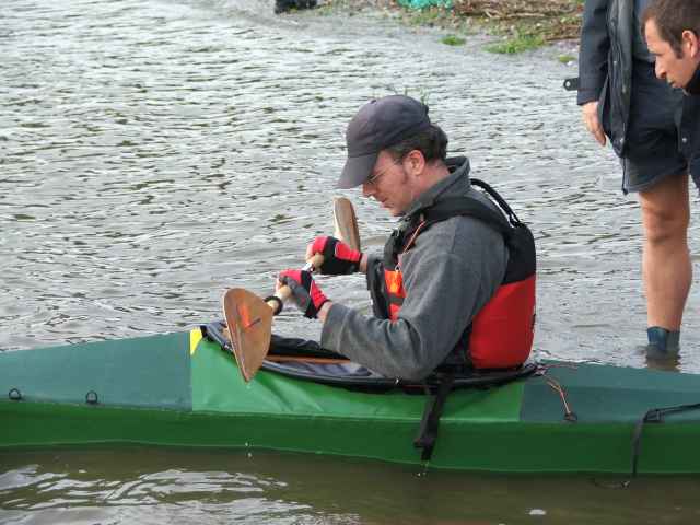 Mit Hilfe von Stephan sitze ich im Boot.