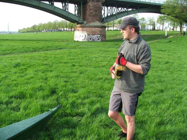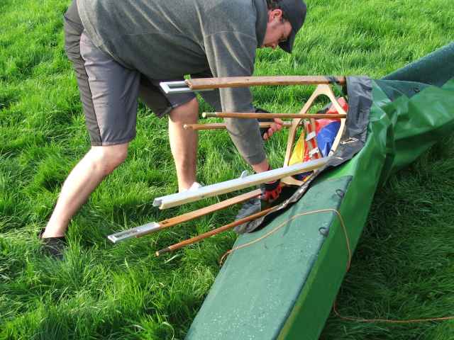 Einen Abbau musste ich auch zeigen. Ekke hat schon genug gelitten, dass ich mit dem aufgebauten Boot ankam. Aber ich wollte keine Zeit verlieren oder das Boot etwa im Regen aufbauen. Mit dem Wetter hatten wir aber Glück. Bis wenige Stunden zuvor hat es 36 Stunden am Stück geregnet.