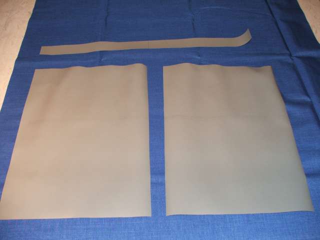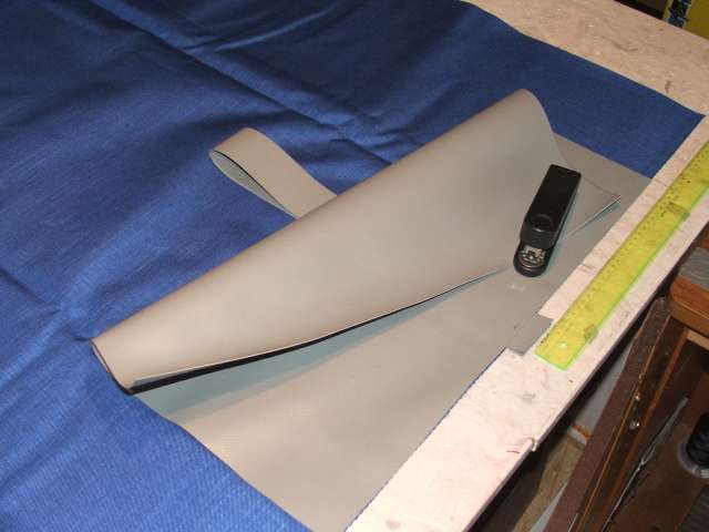 Dann werden die beiden Endlappen aus möglichst dickem Material geschnitten. Ich verwende hier PVC-Plane mit 1200g/qm. Die Maße