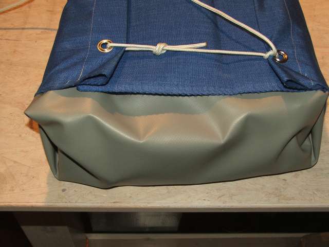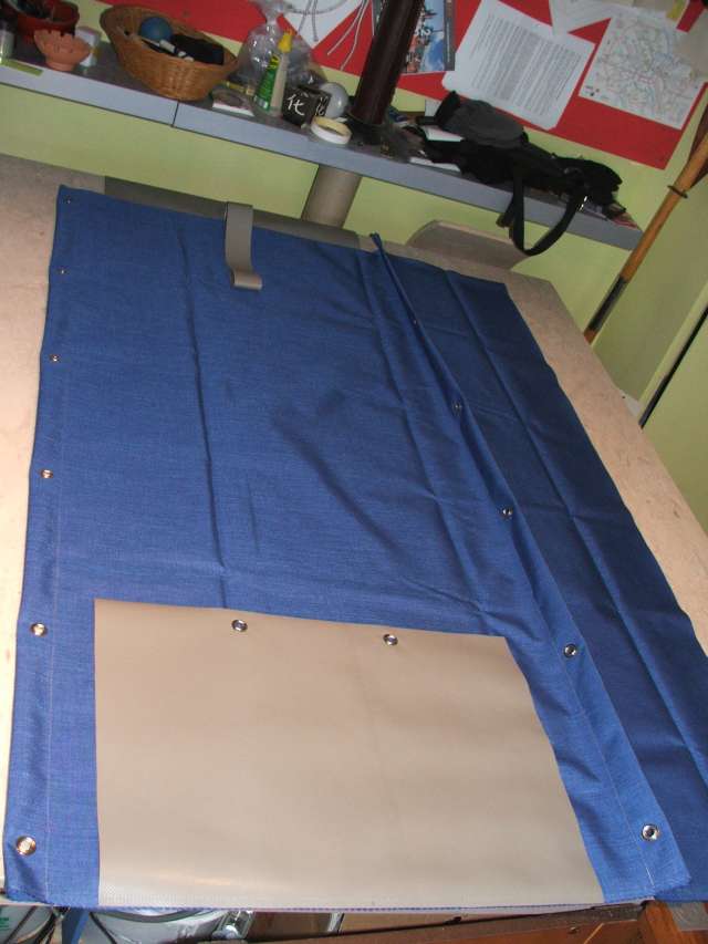 Entsprechend gespiegelt wird der Lappen am 'unteren' Ende der Plane angenäht, ohne Handschlaufe.