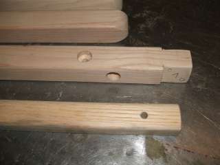 Die Querleisten sind 28cm lang, die Bohrungen hier ebenfalls 22cm entfernt, die beiden hochstehenden Leisten 24cm. Die Achsleiste ist 41cm lang und 25x25mm im Querschnitt.
