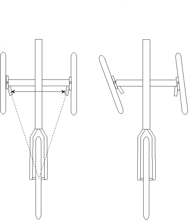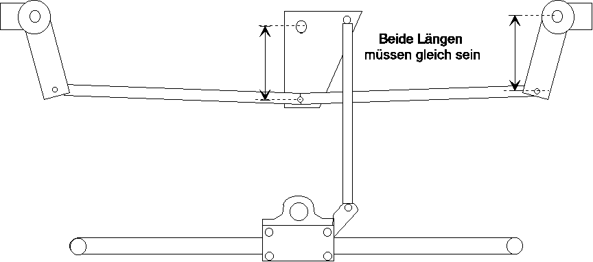Allerdings kann die Steuerung auch nervös wirken, wenn diese Regel genau eingehalten wird. Um dem zu begegnen können die Verbindungsstellen etwas weiter nach aussen gesetzt werden. Auf keinen Fall dürfen sie weiter nach innen gesetzt werden, dann wäre die Steuerung noch nervöser.