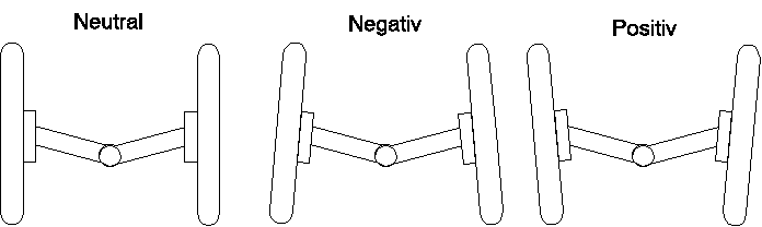 Wenn beide Räder von hinten betrachtet genau senkrecht zur Strasse stehen ist der Sturz neutral, ansonsten positiv oder negativ: