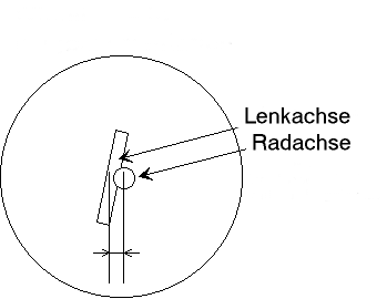 Die Anordnung der Radachse im Verhältnis zur Lenkachse hat einen drastischen Einfluss auf die Lenkung. Wenn die Radachse vor der Lenkachse liegt wird der Nachlauf verringert, was die Lenkung unbeherrschbar machen kann. Die Radachse darf auch nicht zu weit hinter der Lenkachse liegen, da sonst Bodenunebenheiten und Bremskräfte zu stark auf die Lenkung zurückschlagen. Gut ist, wenn der Abstand 0-15mm beträgt. Das hängt auch vom Lenkwinkel ab.