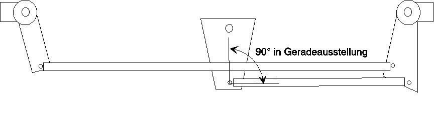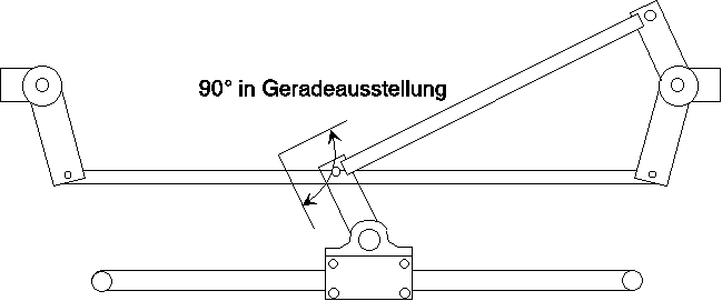 Zu der durchgehenden Spurstange kommt hier noch eine Lenkstange für die zentral angebrachte Lenkung hinzu. Diese Geometrie ist für Obenlenkung günstig.