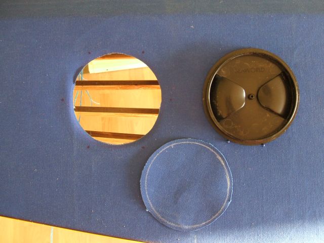 Der Deckstoff wird etwas kleiner ausgeschnitten als der Durchmesser der Luke.
