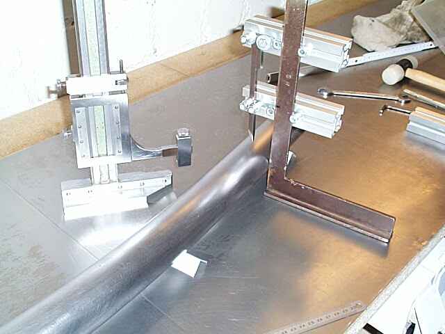 Aufspannen des Rahmens auf der Werkbank. Und immer wieder messen und ausrichten...