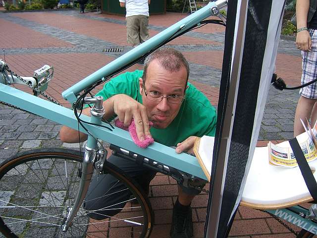 So ein neues Rad muss natürlich auch geputz werden! ;-) Besonders wenn man es auf dem HPV-Treffen in Leer 2009 ausstellen will.
