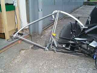 So ein Projekt gehört natürlich gut vorbereitet. Die ersten Skizzen sind schnell gemacht, die endgültige Zeichnung entsteht erst nach Wochen. Dann muss Material besorgt werden, jede Menge Rohre. Die Federungsgummis und die Glycodurbuchsen sind auch noch nicht da. Einen alten Fahrradrahmen habe ich aus dem Gebüsch gezogen, der wuchs da schon seit Monaten :-) Immerhin sind da Ausfallenden mit Schaltwerksauge und Cantisockel dran.