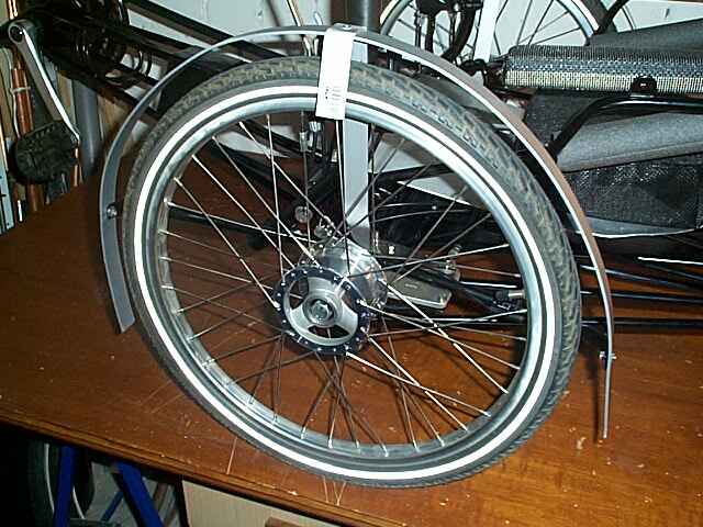 Hinten wird alles von einem Alu-Vierkantrohr gehalten. Es ist an dem ursprünglich für die Rücklichtmontage vorgesehenen Blech angeschraubt. Das Rücklicht ist mit einem Extra-Blech befestigt. Es gab keine andere Möglichkeit, die Schraubenmutter des Rücklichtes festzuziehen. Es ist aber auch eine gute Sache, das Blech gibt federnd etwas nach, wenn mal eine Wand gegen das Rücklicht stösst. Das spart Rücklichter :-)