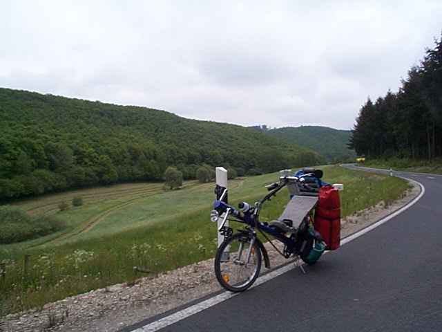 Es gibt eine ausgeschilderte Tour, die von Bingen an der Nahe entlang und weiter über den Hunsrück an die Mosel führt, wo man dann bis Koblenz zurück fahren kann. Als ich an der Nahe unterwegs war, war gerade Vatertag. Es war sehr viel Verkehr, die kleinen Kurorte, durch die man durch musste, nervten gewaltig. Am nächsten Tag im Hunsrück war es super ruhig und viel entspannter. Die ausgeschilderte Strecke habe ich abgekürzt und bin dann in Traben-Trarbach an der Mosel ausgekommen. (Wers mag, sollte die Abfahrt vom Hunsrück nach Traben-Trarbach unbedingt mal fahren: 9km supersteile Serpentinen machen einfach Laune!) Dann ging es 130km an der Mosel entlang bis nach Koblenz. Das sind 130km entlang einer Bundesstrasse mit viel Verkehr, eintönigen Aussichten auf die Mosel und kaum ein ruhiges Fleckchen für eine Pause. Nie wieder, danke!