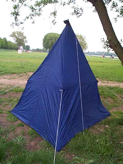 Es wird noch eine Ergänzung geben: Eine fünfte Seitenwand aus Moskitonetz werde ich noch anfertigen. Bei Verwendung als Tipi kann diese dann mit Klettband eingesetzt werden. Dadurch wird die Grundfläche des Tipis nochmal grösser. So kann man im Sommer vor Mücken geschützt abends in Ruhe kochen oder lesen.